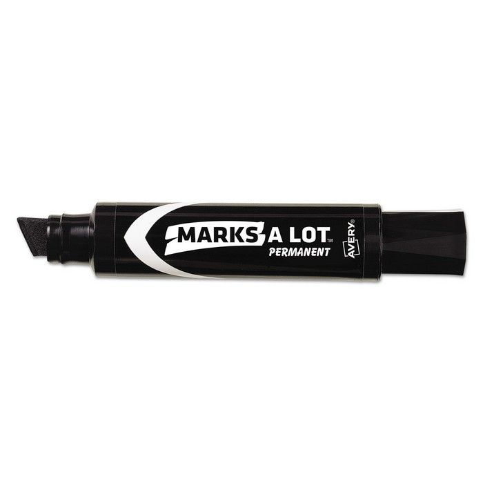 Avery MARKS A LOT Extra-Large Desk-Style Permanent Marker Durable jumbo chisel tip (5/8") marks in a variety of line widths, from thin to extra wide - great for making signs, posters and banners. Extra-large barrel with generous, long-lasting ink supply. Won't dry out - leave cap off up to 1/2 hour! The ink is low-odor, nontoxic and safe for office, school, or home. Marker Ink Type: Permanent; Marker Tip Type: Chisel; Marker Tip Size (text): Extra-Broad; Marker Tip Size (numeric): 15.9 mm.