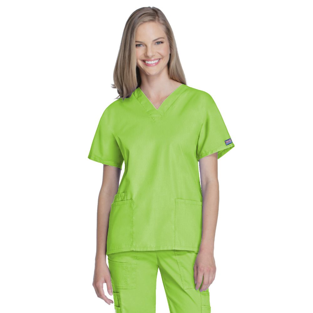 Cherokee Women's V-Neck Two Pocket Solid Scrub Top is a traditional fit, dolman sleeve, v-neck top with side seam vents, two patch pockets, and a cell phone pocket. It provides durable wrinkle-free fabric that holds up after multiple washings.