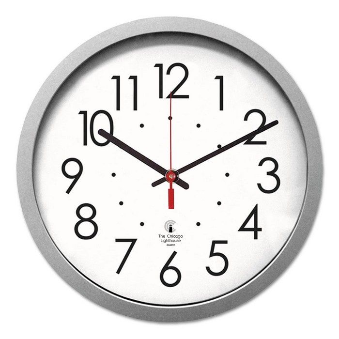Chicago Lighthouse Silver Contemporary Clock - With a silver case, this stylish clock delivers a classic feel with modern precision. Large, high-contrast dial. Flat rim lens prevents glare.