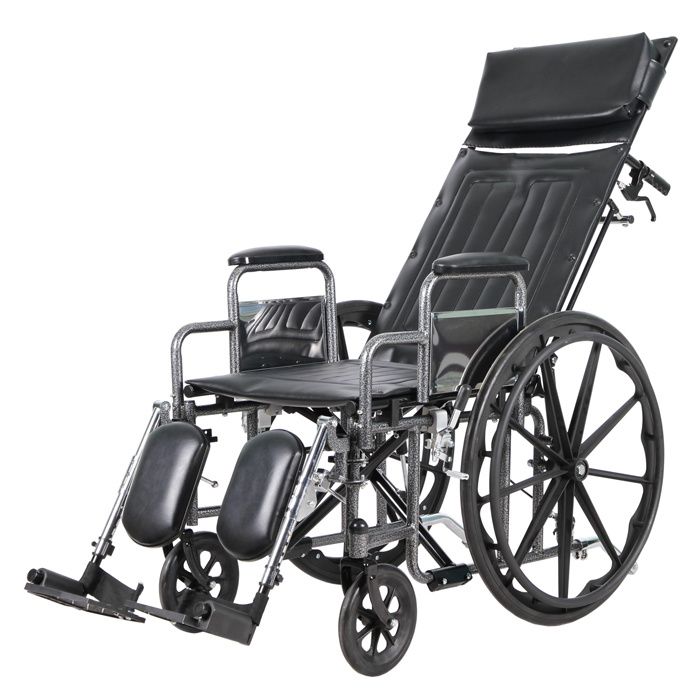 CostCare Millenium Reclining Wheelchair is engineered to provide maximum comfort and durability for long-term rehabilitation. A long-lasting carbon steel frame provides robust construction for daily usage. Reclining cylinders of aerospace quality guarantee safe and seamless reclining movement. The adult to hemi seat height modification is made possible by the two-wheel placements. The patient is kept comfortable and safe with double-embossed padded upholstery that is flame-resistant.