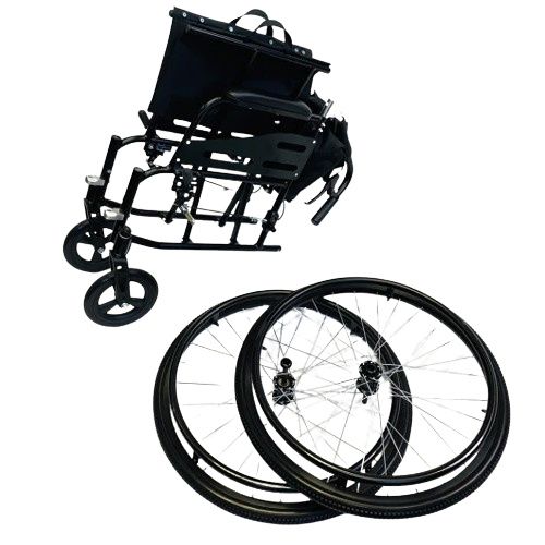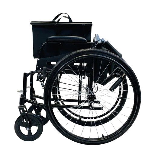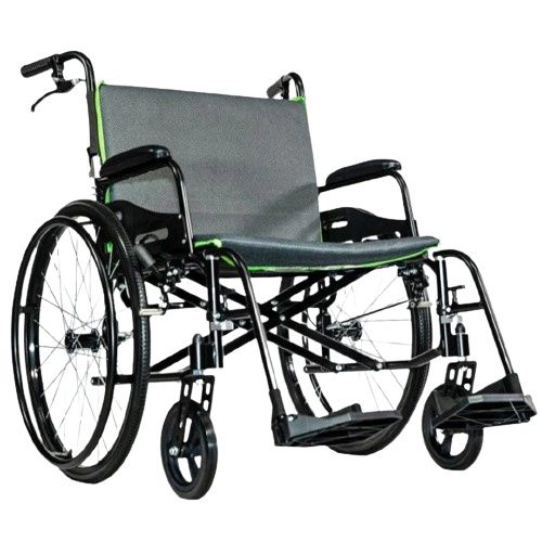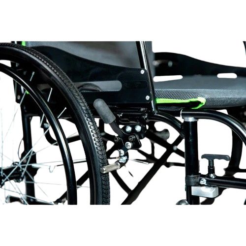 Feather Mobility Lightweight Wheelchair created for both outdoor and indoor navigation. It is very lightweight and has a weighing capacity of up to 350 Lbs. It has a full-length arm and swing-away footrest.