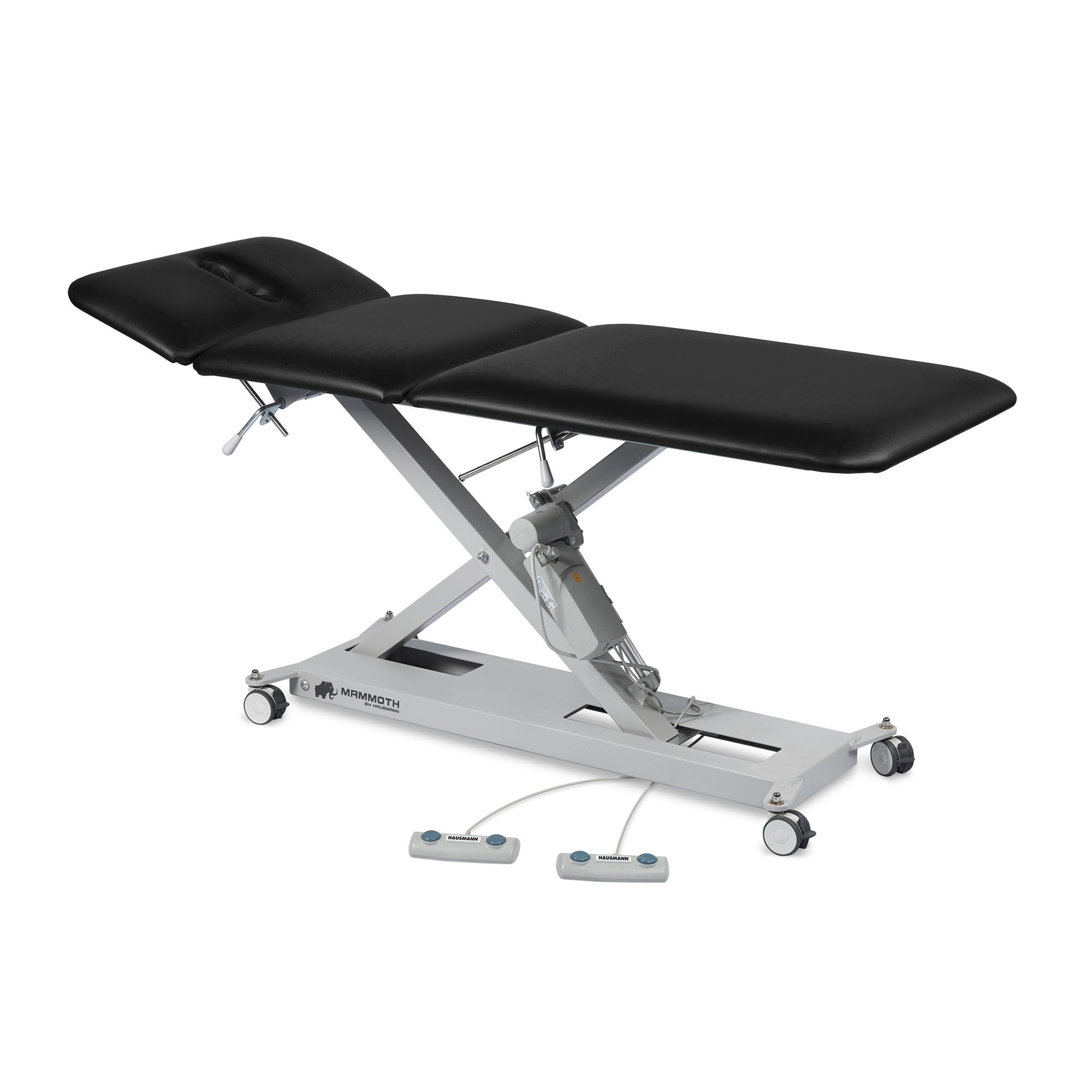 Hausmann Mammoth 3-Section Hi-Lo Treatment Table has a durable steel frame and features high-quality pro-form vinyl. It is proudly assembled and upholstered. The Hi-Lo treatment tables take up less operational space with no end-to-end movement. It has a durable heavyweight pro-form vinyl upholstery – withstands heavy cleaning and disinfecting.
