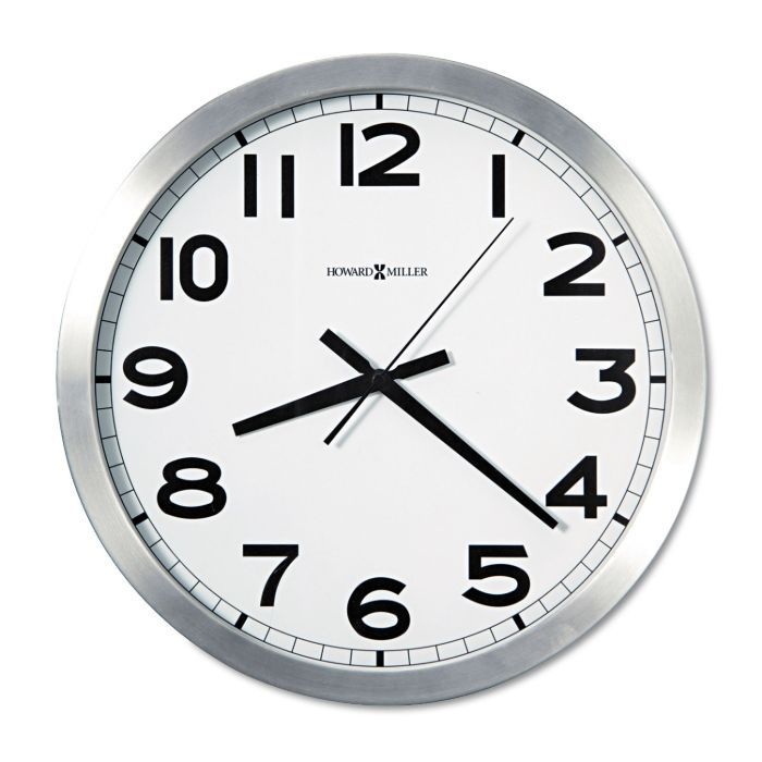 Howard Miller Spokane Wall Clock - Flat glass crystal and flat rim prevent glare. Large, black Arabic numerals for easy and accurate reading. Brushed aluminum metal case offers a clean, modern look.