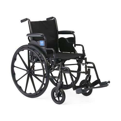 Medline K3 Guardian 16-Inch Seat Width Wheelchair features a durable hammertone frame and easy-to-clean nylon upholstery. It is designed with swing-back arms that are also removable for easy transfers and storage and is hemi-height adjustable.