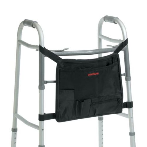 Medline Walker Carry Pouch and Tote attaches to the front of walker with four straps. It keeps small items handy and helps the user keep his or her hands on the walker. It fit on most walkers.