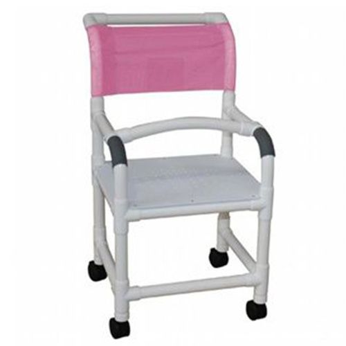 MJM Shower Chair with Flat Stock Seat feature 3'' rust-proof threaded stem casters that offer easy movement and maneuvering. Anti-slip handgrips offer security and stability for the carer. It offers a safe, comfortable, and easy bathing experience. Features 18'' seat & 300 lbs capacity. It has a fast-drying removable mesh back/sling.