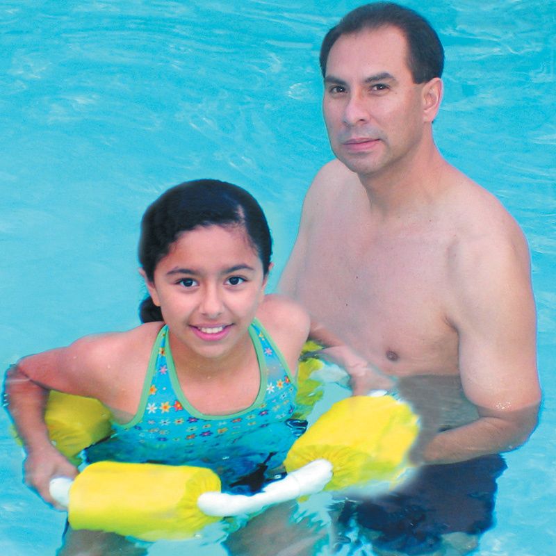 MJM International Aqua Ring Float is designed for children and adults who can support themselves in the water in an upright position but need to walk with assistance. All four sides of the aqua float are supported with polyethylene foam. It is made of healthcare grade PVC and is reinforced at all stress related areas to ensure safety.