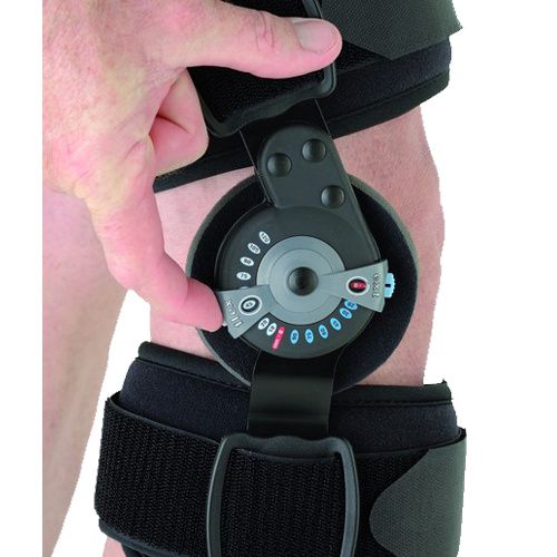 Ossur Innovator Full Post-Op Knee Brace is designed with one-touch technology which provides an easy to adjust ROM hinge with lock-out capability from 10-degree to 30 degree. It offers a wide range of flexion and extension settings that allow the user to choose the optimal range of motion. The knee brace features break-away struts for easy, tool-free length adjustment and provides immobilization following injury or surgery.