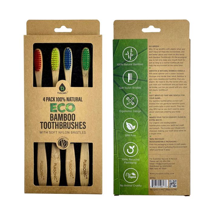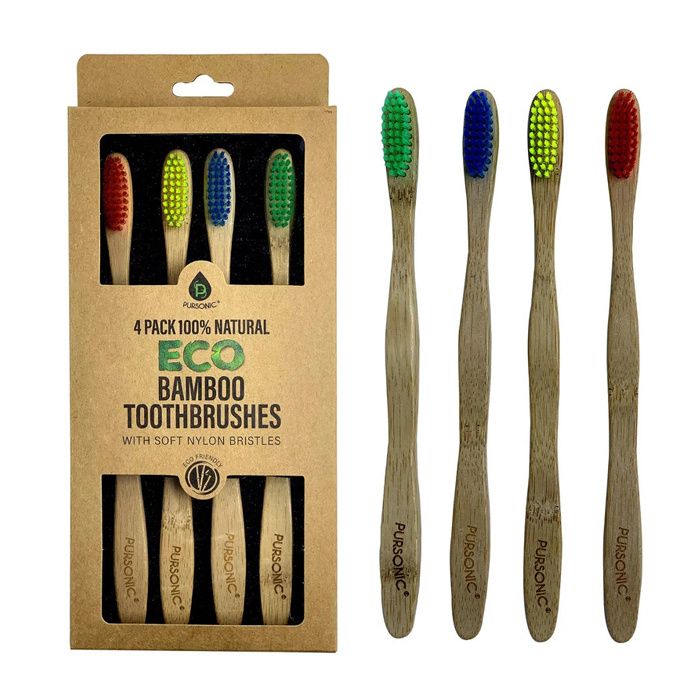 Pursonic Eco Bamboo Toothbrush with soft nylon bristles. The objective of nylon brushes is to maintain a healthy appearance for the user's teeth and gums by gently cleaning them.
