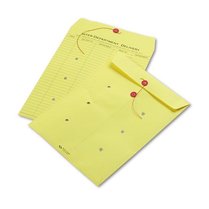 Quality Park Colored Paper String & Button Interoffice Envelope Separate significant tasks apart from the norm using inter-Department envelopes. The durable kraft paper is a bold shade that will stand out in anyone's inbox to ensure the assignment gets completed. Employees can take advantage of the preprinted columns to denote the date and department, so everyone involved can stay informed of where the materials have been, and where they are headed. With simple string and button closure, offices can rely on these envelopes for repeated use. Seam Type: Center; Flap Type: Cheese Blade; Trade Size: #97; Security Tinted: No.