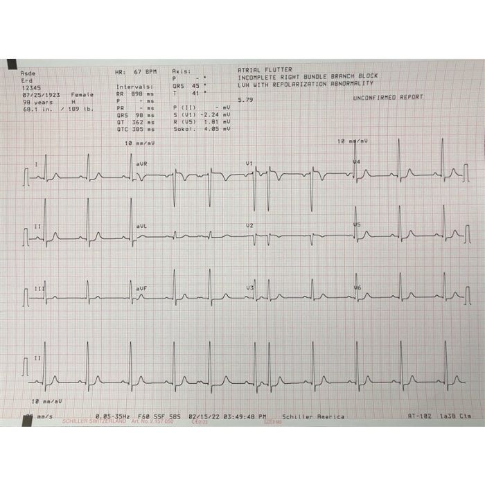 Schiller America ECG CARDIOVIT AT-102 is used in hospitals for patients and for easy data access and fast transmission of ECG reports to EMR/HIS systems. It has A4 z-fold thermal paper and 10 lead patient cables.