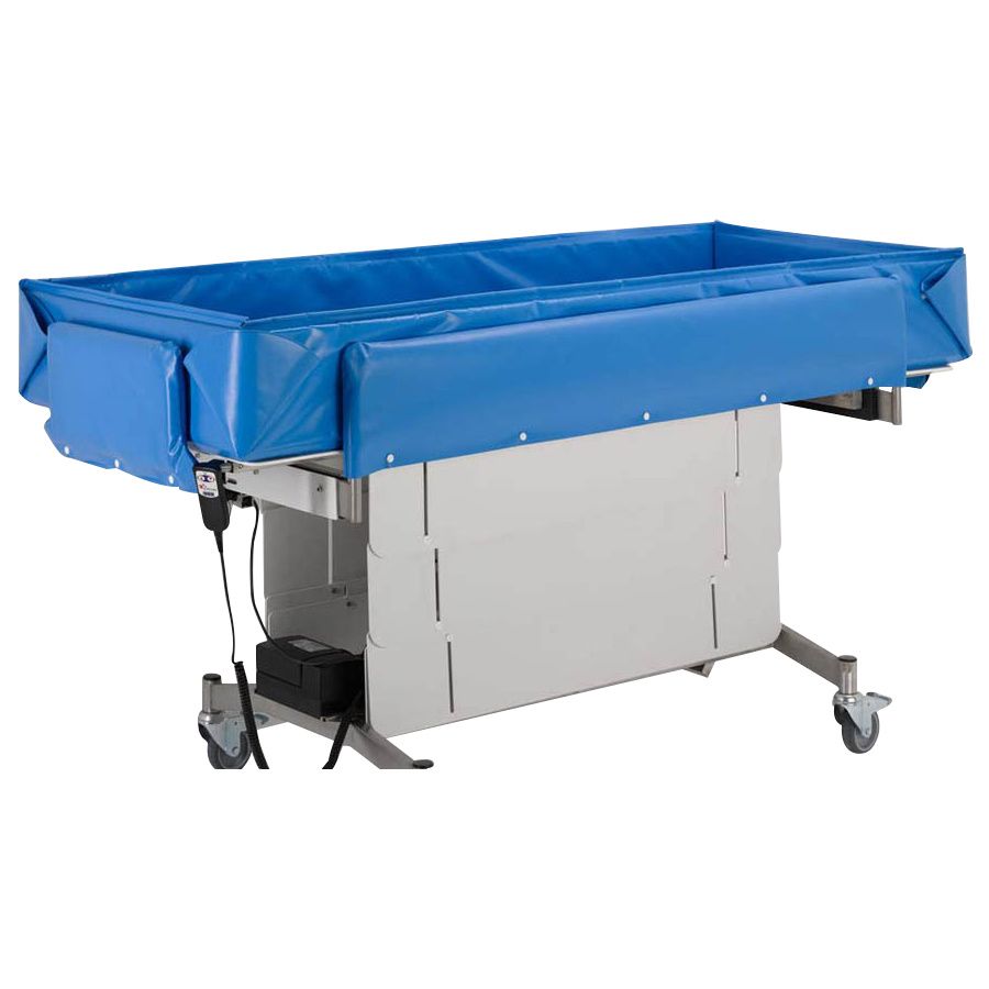 Smirthwaite Mobi Shower Trolley is a powered height adjustable shower trolley specifically designed to enable safe and easy washing or showering of patient whilst in a reclined or supine position. It can be easily wheeled to and from any wet-room, making it an ideal bathing solution for a wide range of care settings. The four locking castors prevent movement during transfer. It offers a range of height adjustments to enable the carer to shower and change the user at a safe and suitable working height. This reduces the risk of back injury for the carer. Designed with two unique safety side rails that can be easily stowed away beneath the trolley.