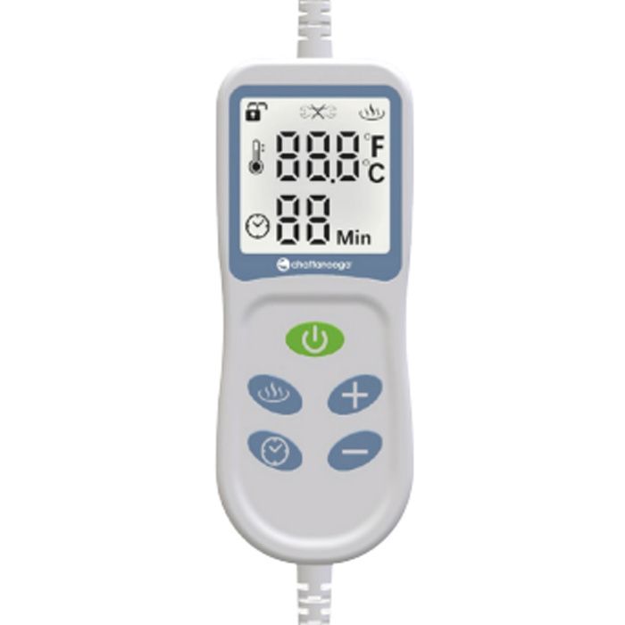 The Theratherm Digital Moist Heating Pad is easier to use than the other electric heating pads on the market due to its unique digital hand control. Most competitive units require continuous contact with a spring-loaded switch to generate and maintain heat from the pad. The digital controller allows one to set the temperature and time as well as features a lockout mode to guard against remiss touching the controls during treatment.