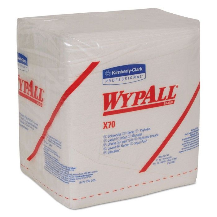 WypAll X70 Cloths - With high-tech HydroKnit fast-absorbing material, WypAll X70 cloths are made of soft pulp fibers, bonded to a polypropylene base sheet for absorbency and tear-resistance, making them suitable for removing dirt, oil, grime and solvents in a variety of industrial and manufacturing industries. They are so sturdy that they can often be used more than once (once you've used them a few times, they're disposable). They are designed to clean surfaces and tools, making them a must-have for the HVAC, automotive, manufacturing and industrial industries. BRAG Box.
